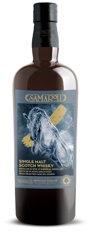 A rare Speyside single malt, single-cask release from a lost distillery, selected and bottled by the renowned Italian independent bottler Samaroli. Imperial 1998 / 2023 was drawn from a single ex-Bourbon barrel #100898 and was bottled in Scotland in 2023. This extremely limited release, with only 175 bottles available worldwide, is an epic bottling for connoisseurs and whisky collectors from closed distilleries. Imperial 1998 is part of Samaroli’s Magnifico Series, featuring elegant, cask-driven expressions.
